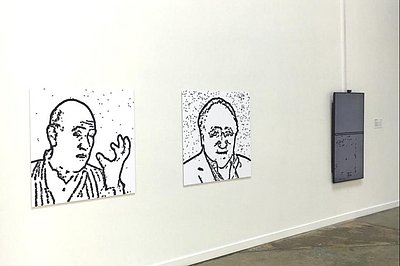 Christa Sommerer and Laurent Mignonneau show 4 printed portraits and the interactive version of "Portrait on the Fly".