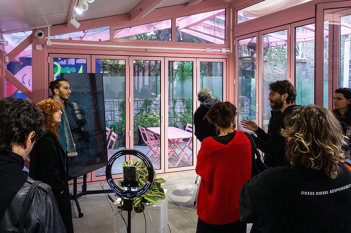 This installation stages the symbiotic dynamic between users and algorithm-driven social media. Platforms adapt content to user behavior, while endless streams of stimuli trigger dopamine release, reinforcing compulsive scrolling. Here a plant becomes the agent: its bioelectrical signals activate a mechanical device that performs screen gestures on TikTok. The algorithm adjusts and curates the content as it would with a human user, creating an unusual loop of feedback and adaptation. By transposing this addictive cycle onto a non-human organism, the work reframes the relationship between nature, technology, and algorithms, questioning their influence on behavior, mental health, and the reinforcement of biases embedded in everyday digital infrastructures.