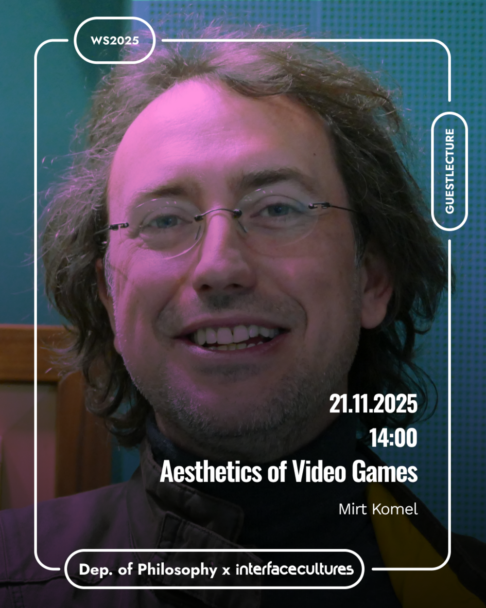 Die Abteilungen Philosophie & Interface Cultures laden zum Gastvortrag von Mirt Komel.