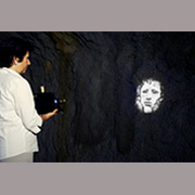 In the new work "Excavate" (2012) visitors can interact with a magic lantern interface that allows them to explore dark particles which assemble to built up faint children faces that appear and dissapear according to the users's interactions.