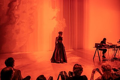 When noise music and classical opera meet: Monica Vlad is an experimental audio/visual artist who creates a noise composition based on opera using a live soprano voice interpreted by Johanna Falkinger. The structure is based on three different arias sung by her although these arias were not originally composed for this opera. Similar to the system of an Aria di Baule – a so-called suitcase or insertion aria – the singer is choosing the arias to be sung. In addition, the sound artist Monica Vlad changes the orchestral accompaniment to electronic noise and the classical instruments are replaced by analog machines. The arias, however, are interpreted by the soprano as original.