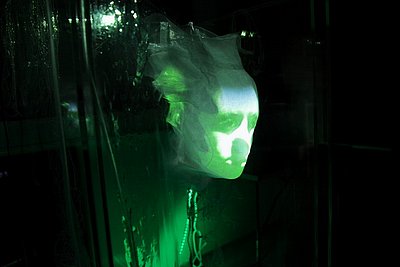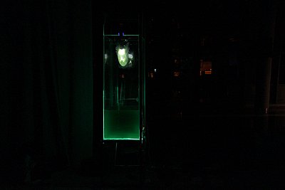 POWER STRANGERS is an interactive real-time video and audio installation. It consists of a web camera, projector and a water tank filled with reactive slime. It is based on custom-made face detection algorithm. When approaching the installation, the spectator’s face is being traced by a live camera feed. The data received from the camera is being processed and projected inside the tank, only when the spectator turns away from the installation - therefore, they are never able to see the projection of their face. Lurking behind the spectator, there is an image of them disconnected from the self, yet dependent on it - becoming their ghost. Contemporary ghosts live in the digital data and they generate the power of the automated surveillance systems. Extracting the disembodied - virtual presence from its real life experience, introduces the idea of being haunted by your own ghost - your own digital data. In context of hauntology and retro-futurism, it aims to present current state of commodification towards global surveillance capitalism. Referencing a pop-culture phenomenon that marks the 90’s generations, whose youth seems to be the last one to grasp pre-internet or pre-social media times, the aim of this project is to suggest what comes as a phenomenon of the post-internet world. In this world, the ghosts that exist do not come from a haunted house, they come from our own digital traces. We are all strangers whose ghosts roam around in the world of data, and we generate the power of that world. The more we learn about power that we have to shape this world, the better rangers for the future we are.