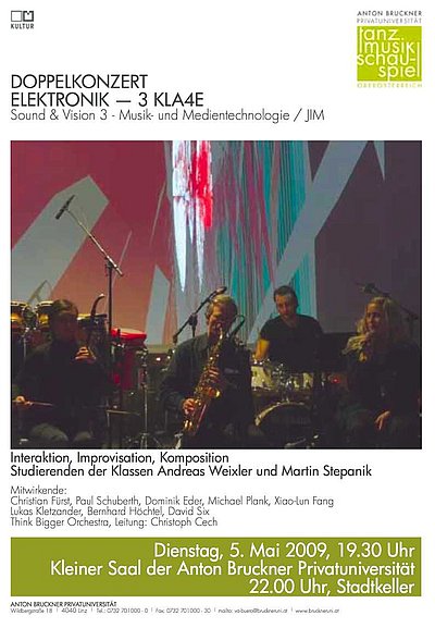 Konzert der Musik- und Medientechnologie und JIM Interaktion, Improvisation und Komposition von und mit Studierenden bei Andreas Weixler und Martin Stepanik.