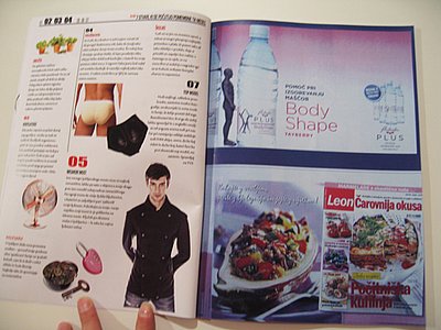 Čigon’s latest project differs somewhat from her other works in its explicitly conceptual structure. On this occasion, however, Čigon has decided to address the viewer directly using only the manipulative power of a form of the mass media, namely, magazines. Thus she has conceived Translations 1 on the model of today’s women’s and men’s magazines. She selected a few of the most notorious, and most influential, publications found in Slovenia, which through their inane advice impose unrealistic norms and unattainable ideals of beauty, misleading and dulling the minds of the “believing” masses. To achieve a new balance of comparisons, she conceived and "published" new variations of one women's and one men's magazine both consisting of 40 pages of text, pictures and also few advertising pages. Her purpose was to make visible a great amount of stereotypes hidden in text an pictures that are found in this kind of magazines.