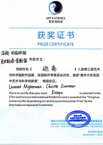 Der Preis wurde im Rahmen der Ausstellung "Third Art & Science International Exhibition and Symposium" am China Science and Technology Museum /Bejing in Kollaboration mit der Tsinghua  University verliehen.