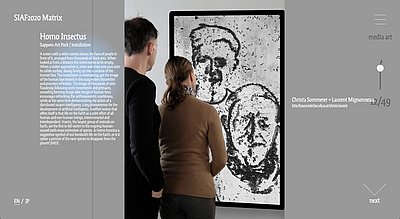 Christa Sommerer & Laurent Mignonneau show their new work "Homo Insectus" © 2020 and documentations of their classic piece "A-Volve" © 1994, as well as an artists interview at SIAF2020 Sapporo International Art Festival in Japan
