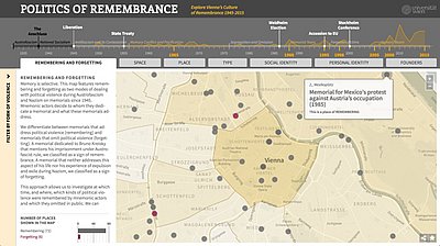 Im Rahmen des Projektes POREM realisierte Tina Frank zusammen mit Christoph Fink (Universität Helsinki) und Ramon Bauer (Universität Wien) die digitale Karte und Website "Politics of Remembrance - Explore Vienna's Culture of Remembrance". Bei der Internationalen Konferenz für Kartographie in Tokyo wurden sie nun mit dem ersten Preis in der Kategorie "digital products" ausgezeichnet.