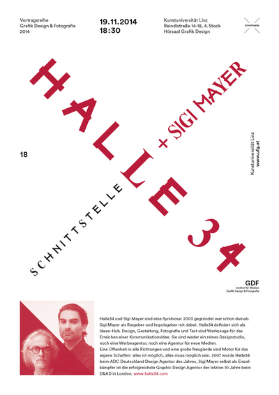 Vortrag von Halle 34 und Sigi Mayer im Rahmen der Vortragsreihe Schnittstelle x 18.