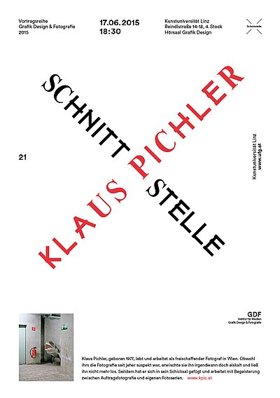 Vortrag von Klaus Pichler im Rahmen der Reihe Schnittstelle in der Abteilung Grafik-Design und Fotografie.