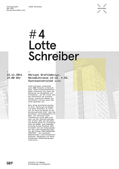 Im Rahmen der Vortragsreihe "SCHNITTSTELLE ×" spricht Lotte Schreiber über “Architektur & Bild”.