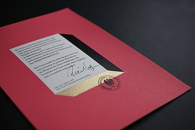 Gestaltet wurde die Urkunde vom Designkollektiv Julia Juriga-Lamut & Marion Mayr.