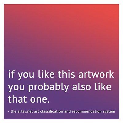 Das Ziel der Vernetzunglogik hinter dieser Kunstdatenbank ist es, Ähnlichkeiten zu erkennen und nach individuellem Kunstgeschmack zu filtern.