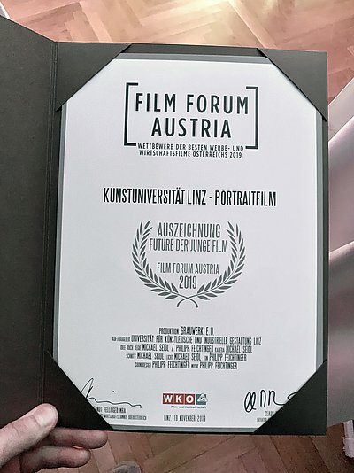 Portrait der Kunstuniversität Linz, produziert von "grauwerk" in Zusammenarbeit mit Studierenden der Zeitbasierten und Interaktiven Medien an der Kunstuniversität Linz, wird in der Kategorie FUTURE DER JUNGE FILM | 2019 ausgezeichnet.
