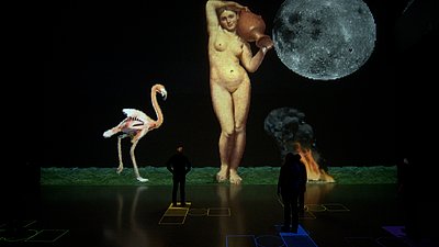 Die Intention der  „Kooperative Ästhetik besteht darin, den Deep Space in einen Raum zu verwandeln, in dem die Besucher*innen durch Herumgehen den visuellen Output der Wand-und Bodenprojektionen und den Sound  beeinflussen.