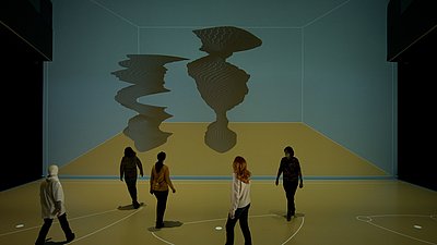 Die Intention der  „Kooperative Ästhetik besteht darin, den Deep Space in einen Raum zu verwandeln, in dem die Besucher*innen durch Herumgehen den visuellen Output der Wand-und Bodenprojektionen und den Sound  beeinflussen.