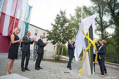 v.l.n.r.: Bürgermeister von Steyr Gerald Hackl, Kappa-CEO Mag.Klaus Krüger, ORF-Moderatorin Katrin Wachauer und Bernhard Brandstetter © Kappa