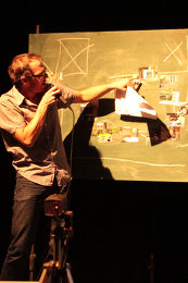 Das Material für die Vorlesungen liefern Texte von Alltags TheoretikerInnen wie Henri Lefebvre und künstlerische Feldforschungen des Instituts für Alltagsforschung (www. alltagsforschung.org). Präsentiert wird die Kritik des gegenwärtigen Alltags u.a. mit Hilfe von human powerpoint und Videointerviews mit fiktiven Figuren wie dem Flaneur oder der Rhythmusanalytikerin. Und wer eine Episode der Serie verpasst, kann sich dank des „previously on …“ zu Beginn jeder Lecture immer wieder auf den aktuellen Stand bringen.