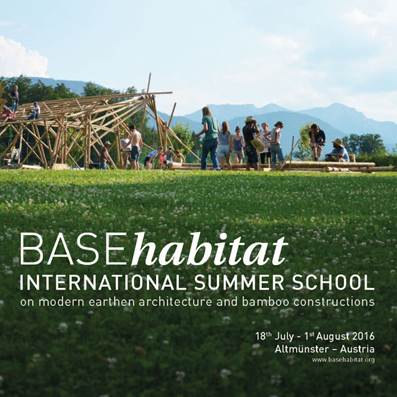Von 18.7. bis 1.8.2016 treffen sich 85 TeilnehmerInnen und 15 Lehrende aus 40 Nationen im Agrar Bildungs Zentrum Salzkammergut Altmünster am Traunsee, um unter professioneller Anleitung verschiedeneTechniken des Lehm- und Bambusbaus zu lernen.