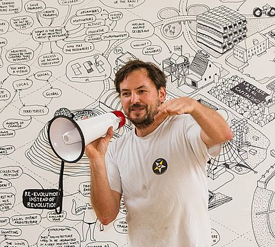 studied carpentry and architecture. He founded ConstructLab as a forum for participative design-build projects in 1998. In 2005 he joined the Parisian collective EXYZT and worked on many projects among others the French contribution to the 10th architecture biennial in Venice 2006. With the idea of ConstructLab and its network of designers, builders, architects, photographs, graphic designers, gardeners or cooks he initiated and designed numerous projects internationally.