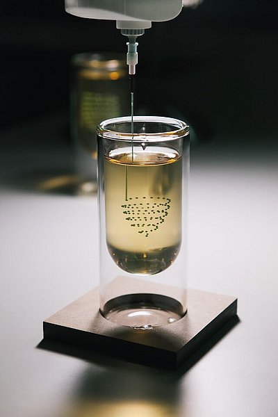 Benjamin Greimel ist seit 2012 Student an der Kunstuniversität Linz, Studienrichtung Industrial Design scionic®. Sein Projekt PRINT A DRINK verbindet Design, Technologie und Industrie auf zukunftsweisende Art. PRINT A DRINK ist ein neuartiges 3D-Druckverfahren und wurde im Rahmen des „Machinic Food Design“ Projekts an der Kunstuniversität Linz entwickelt. Dabei werden einzelne Öltropfen in eine verdickte Flüssigkeit injiziert. Das Ergebnis sind faszinierende trinkbare Cocktails, „personalisierte“ Drinks, in denen unterschiedliche Formen wie von Zauberhand schweben. Zur Erzeugung der Lebensmittelkreationen nutzt Benjamin Greimel die Präzision von Industrierobotern, die vom deutschen Unternehmen KUKA zur Verfügung gestellt werden.