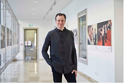 Patrick Bartos (GF CREATIVE REGION) trägt ein Hemd von Kollektiv Yokai das mittels 3D Scan entworfen und robotergestützt an der Kunstuniversität Linz produziert wurde © Mario Riener