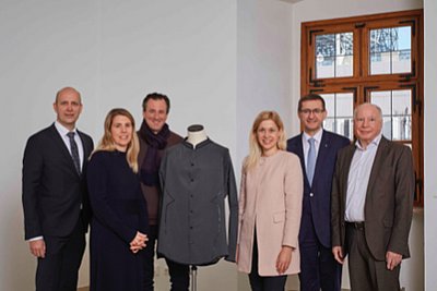 v.l.n.r. Christoph Breitschopf (GF PROFACTOR), Christiane Luible-Bär (Co-Leiterin fashion & technology, Kunstuniversität Linz), Patrick Bartos (GF CREATIVE REGION), STRin Doris Lang-Mayerhofer, Wirtschafts-Landesrat Markus Achleitner, Rektor Reinhard Kannonier (Kunstuniversität Linz) © Mario Riener