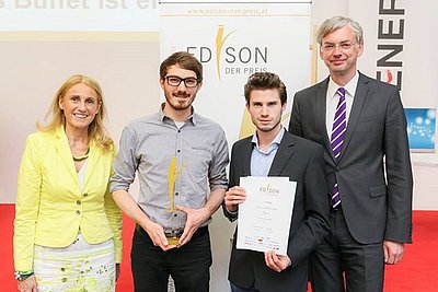 EDISON der Preis ist ein zweistufiger Ideenwettbewerb, der sich an kreative, technologie- und innovativ-orientierte ErfinderInnen richtet. Er ist ein Preis der Johannes Kepler Universität Linz, der Kunstuniversität Linz und der Fachhochschule Oberösterreich und wird organisiert von tech2b in Zusammenarbeit mit business pro austria und mit Unterstützung der CREATIVE REGION. Ausgezeichnet werden die marktfähigsten, aussichtsreichsten und innovativsten Konzepte. Den GewinnerInnen der zweiten Phase werden neben Geldpreisen auch die Trophäen EDISON in Gold, Silber und Bronze sowie Sonderpreise verliehen. Die Preisverleihung fand am 30. Juni 2015 in der ENERGIE AG, Böhmerwaldstrasse 3, statt.