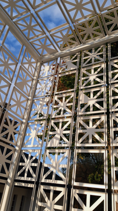 „Ein Sternenkind ist für mich etwas nicht Greifbares, doch wunderbares, weil es, wenn auch nur kurz, ein LEBEN war und seine Spuren hinterlässt. So ist die Idee eines hellen, klingenden Raumes entstanden. Durch sein Gitterwerk fließt Licht und der Wind lässt zarte Klänge entstehen. Ähnlich wie unter einem blühenden Baum stehend, lässt der kleine hohe Raum den Blick der Eintretenden nach oben wandern, und verbreitet eine Atmosphäre von Leichtigkeit, Verbundenheit und Dankbarkeit,“ Su-Mara Kainz, Künstlerin.