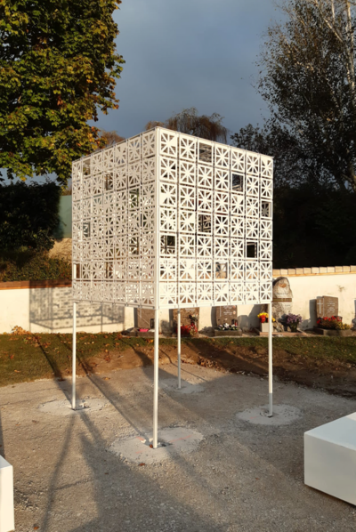 Entstanden ist ein heller, lichtdurchfluteter, begehbarer Hohlkörper, der in seiner filigranen Ausführung an die menschliche Zerbrechlichkeit erinnert. Zarte Klänge der Windspiele erinnern an verstorbene Kinder, an eine verlorene Zukunft.