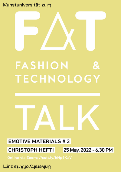 Im Rahmen der Lehrveranstaltung ‚ Emotive Materials‘ werden Designer*innen aus der Praxis zu Gesprächen eingeladen. Durch diese Gesprächsreihe sollen der Umgang und die Herangehensweise mit Materialien und deren Verwendung innerhalb des Designprozesses sichtbar gemacht werden. Die Studierenden werden die Möglichkeit haben sich in Form eines Q&A mit den Künstler*innen auszutauschen.