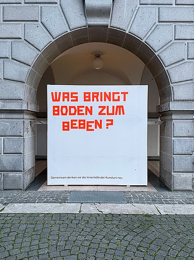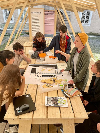Im Rahmen eines Design-Build-Workshops arbeitet eine interdisziplinäre Studierendengruppe mit Clemens Bauder prozesshaft an der Neukonzeption und -gestaltung der Innenhöfe der Kunstuniversität am Hauptplatz.