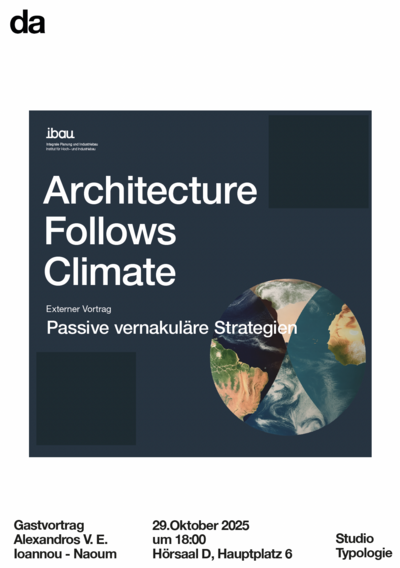 Der Vortrag beleuchtet passive Strategien vernakulärer Bauweisen in unter schiedlichen Klimazonen und zeigt, wie deren über Generationen angesammeltes Wissen Räume formte, die Klima und Ressourcen auf subtile Weise integrierten.Im Zentrum steht die Frage: Welche Strategien lassen sich aus diesen traditionellen Techniken für die Architektur der Gegenwart nutzbar machen?