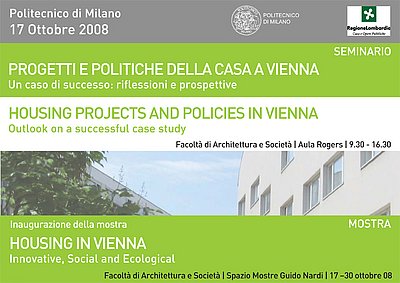 Die Austellung WIENER WOHNBAU - innovativ, sozial, ökologisch wurde zuvor erstmals von 12.09. bis 03.10.2008 im Rahmen der 11. Internationalen Architekturbiennale gezeigt (Universitá di Venezia, IUAV Facultà di Pianificatione del territorio).