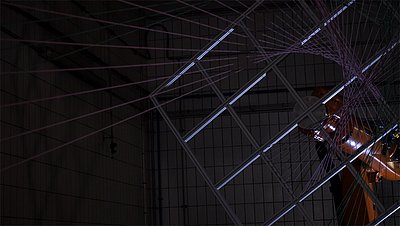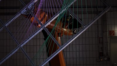 Auch beim Deep Space Event von Fashion & Technology spielt das Labor für kreative Robotik eine zentrale Rolle. Nicht nur, weil der Roboter KUKA Quantec eine Hauptrollespielt und zugleich auch die Kamera bedient. Hinter den Kulissen waren Johannes Braumann und Benjamin Greimel für die Programmierung der Roboterbewegungen und des Auslösemechanismus verantwortlich und boten dem Produktionsteam ihre volle Unterstützung.