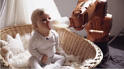 von Christiane Miethge (DE) und Nils Otte (DE) ist eine Transmedia-Projekt von BR, ARTE und ORF über die Zukunftsfrage überhaupt: Was macht die digitale Revolution mit uns als Mensch. Was passiert, wenn Roboter unsere Mütter, Sexpuppen unsere Partner und künstliche Intelligenz unsere Freunde werden? In einer 7-teiligen Webdoku-Serie macht sich die Moderatorin Helen Fares auf die Suche nach Antworten. Sie trifft virtuelle Freunde, lernt eine Drohne mit ihrem Gehirn zu steuern oder trifft auf einen Roboterarm, der ein Baby füttert. Letzteres wurde mit einem KUKA Industrieroboter mit Unterstützung des Labors für Kreative Robotik an der Kunstuniversität Linz aufgenommen.