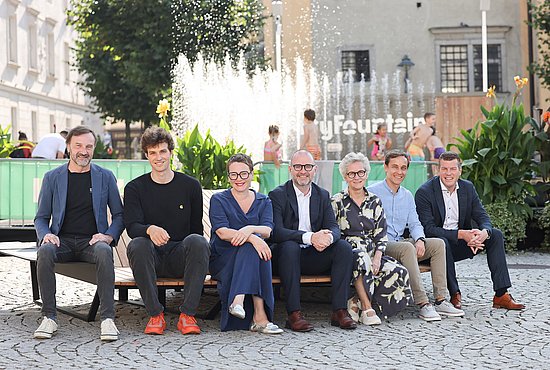 V.l.n.r.: Univ.-Prof. Mario Zeppetzauer, Student Clemens Friedl, Stadträtin Mag.a Eva Schobesberger, Bürgermeister Dietmar Prammer, Vizerektorin der Kunstuniversität Gitti Vasicek, Projektleiter der WAG Manuel Gattermayr und Geschäftsführer der WAG Markus Hinterplattner © Stadt Linz / Dworschak
