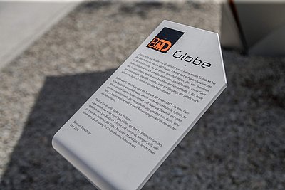 Die Herausforderung bestand nun darin, eine Form zu finden, die je nach Betrachtungswinkel immer wieder neu interpretierbar ist. Die Idee für den BMD Globe war geboren - klare Kanten aus einer Kugel geschliffen, die den Facettenreichtum des Unternehmens zum Ausdruck bringen und intensives, oranges Licht, welches aus dem Innersten des Globes herausbricht und loderndes Feuer sowie den Zukunftsdrang des Unternehmens demonstriert."