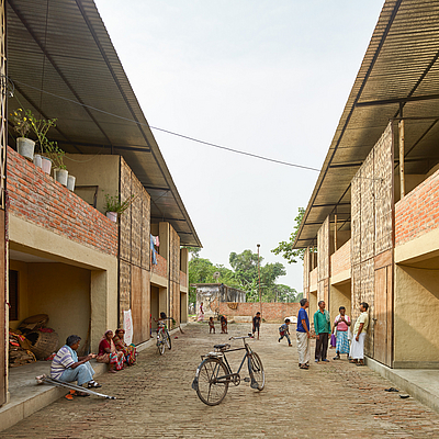 Das in Indien verwirklichte Projekt schafft einfache aber qualitätsvolle Räume für Familien. Die Lehmbauweise ist nicht nur kostengünstig und lokal verfügbar, sondern garantiert trotz hoher Luftfeuchtigkeit, extremer Hitze im Sommer und kalten Winternächten ein angenehmes Raumklima. Das einfache Konzept soll es den Dorfbewohnern ermöglichen, ähnliche Häuser nachzubauen.