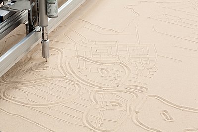 "The Urburb: Muster Neuen Wohnens", der Beitrag im israelischen Pavillon zur Architekturbiennale 2014 in Venedig, kommt ins DAZ. Die Wortschöpfung Urburb steht für die Schnittstelle zwischen urban und suburbanen und dokumentiert so 100 Jahre modernistischer Planung in Israel. In der Ausstellung fräsen vier computergesteuerte Sandrucker auf den Ebenen „Land“, „Stadt“, „Nachbarschaft“ und „Gebäudeeinheit“ Pläne in den Sand. Nachdem die Pläne fertig gezeichnet sind werden sie wieder verwischt und neue Pläne entstehen. Die Kuratoren bringen so einen minimalitisch, aber dennoch ausdrucksstarken Beitrag aus Israel über Venedig nach Berlin.