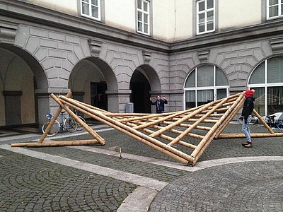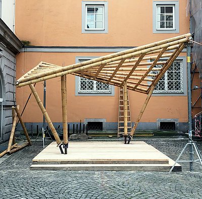 Ein besonderes Highilght beim diesjährigen wärmepol ist ein Pavillon aus Bambus, in dem sich die Veranstaltungbühne befindet. Entstanden ist die exotische Konstruktion in der diesjährigen BASE habitat summer school. Linzer ArchitekturstudentInnen und mehr als 80 TeilnehmerInnen