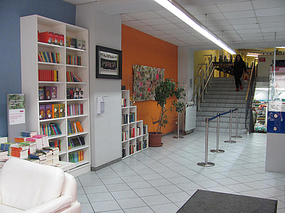 Neugestaltung der Wände des Sozialmarktcafes von Ayan Rezaei, Masterstudierende von raum&designstrategien an der Kunstuniversität Linz.