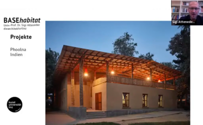 Online-Vortrag von Univ.-Prof. Dr. Sigi Atteneder zum Thema Nachhaltige Architektur im Rahmen des Moduls Emerging Fields in Architecture an der TU Wien.