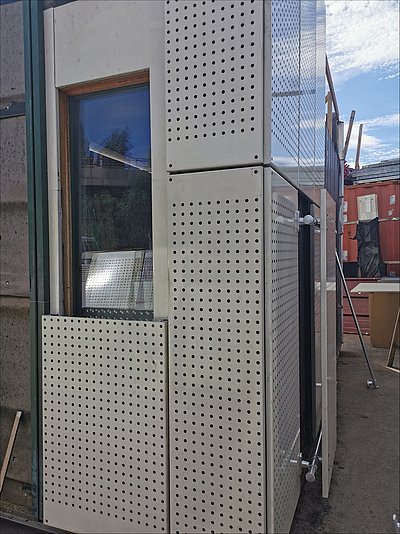 Fassadenelemente aus Alu-Lochplatten von ÖBB Wagons