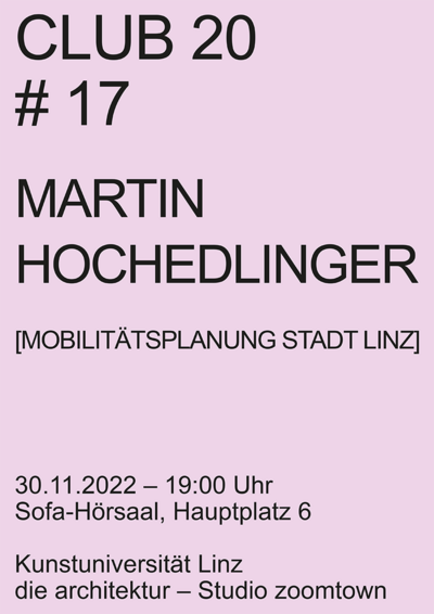 Eine Begegnungszone kann eine Straße sein, deren Fahrbahn für die gemeinsame Nutzung durch aktive und passive Verkehrsteilnehmer:innen bestimmt und als solche visuell wahrnehmbar gekennzeichnet ist. Die Fahrbahn sollen sämtliche Beteiligten wie etwa KFZ- und Elektro-Scooter Lenker:innen, Radfahrer:innen sowie Fußgänger:innen gleichberechtigt nutzen und diese dürfen einander weder gefährden noch behindern. Martin Hochedlinger wird mit uns in seinem Gastvortrag darüber sprechen, dass die Gestaltung von Begegnungszonen nicht nur gegenseitige Rücksichtnahme einfordert und keine rein technische Aufgabe ist, sondern Mobilitätsplanung mitsamt der Reorganisation des öffentlichen [Verkehrs-]Raumes zur Attraktivierung der [gebauten] Umwelt auch einen Beitrag für die Gesellschaft leisten kann.
