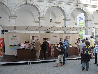 Die ersten acht Laufmeter Genussland sind anlässlich des „Tages der offenen Tür“, am Samstag, den 2. Mai 2009 im Arkadenhof des generalerneuten Landhauses zu sehen und zu testen.