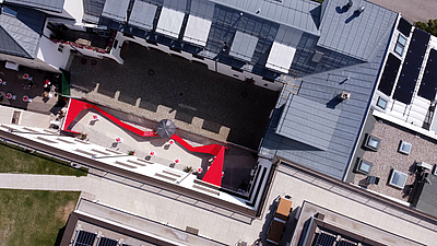 Die 34 Meter lange Skulptur weist auch den Weg zu dem neuen Bürogebäude Futuro und damit zu den neuen Kanzleiräumlichkeiten der Steuerberater Raml und Partner – wir gratulieren Jamie Wagner als Siegerin des gemeinsamen Ideenwettbewerbs daher sehr herzlich für ihr beeindruckendes Werk, das Besucher*innen nicht nur zum Eingang leitet, sondern auch mithilft, das Stadtzentrum von Rohrbach-Berg mit Leben zu erfüllen.