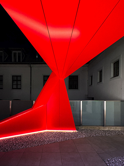 Gemeinsam mit der Kunstuniversität Linz schrieb die Steuerberatungskanzlei Raml und Partner 2022 einen Ideenwettbewerb für eine skulpturale Intervention in ihrem neuen Bürogebäude „FUTURO“ in Rohrbach-Berg, Oberösterreich, aus. Architekturstudentin Jamie Wagner gewann mit ihrem Entwurf „Der rote Faden“ den ersten Platz und setzte das Projekt dieses Jahr um.