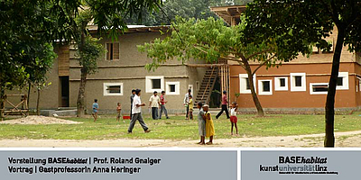 Univ.Prof. Mag.arch. Roland Gnaiger stellt das Projektstudio BASEhabitat - buliding in developing countries vor. Anschließend folgt ein Vortrag von Gastprofessorin Mag.arch. Anna Heringer über ihre gemeinsam mit BASEhabitat reallisierten, preisgekrönten Architekturprojekte in Bangladesh. Zum Abschluss gibt Univ.Ass. Mag.arch. Clemens Quirin einen Ausblick über weitere Aktivitäten des Projektstudios.