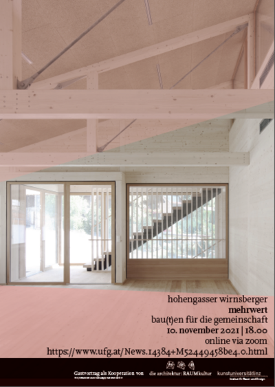Architektur:RAUMkultur lädt zum Vortrag von Sonja Hohengasser und Jürgen Wirnsberger, Teil 3 der 4teiligen Vortragsreihe.