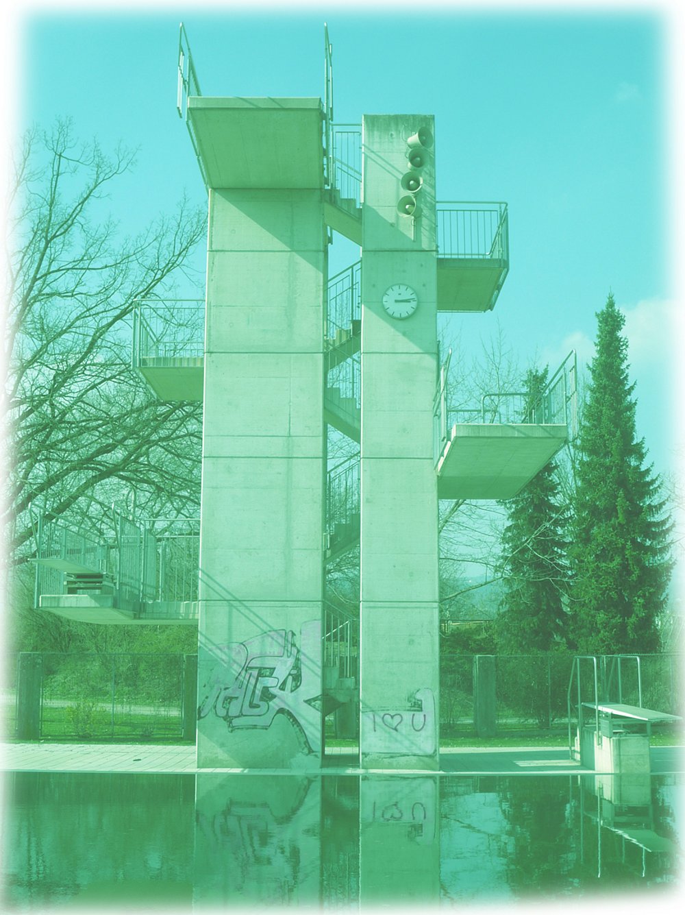Die Architektur | Urbanistik zeigt die eingereichten und prämierten Wettbewerbsbeiträge für die Neugestaltung des Sprungturms im Parkbad Linz.